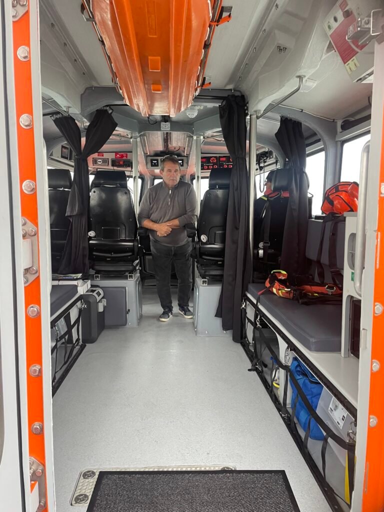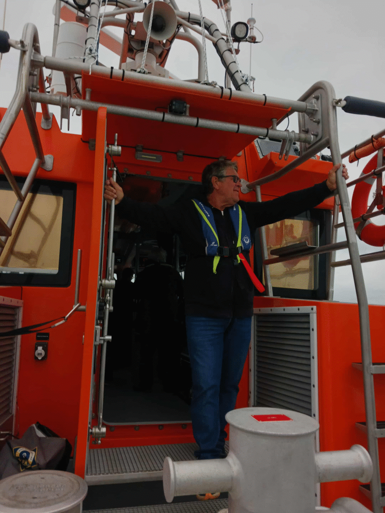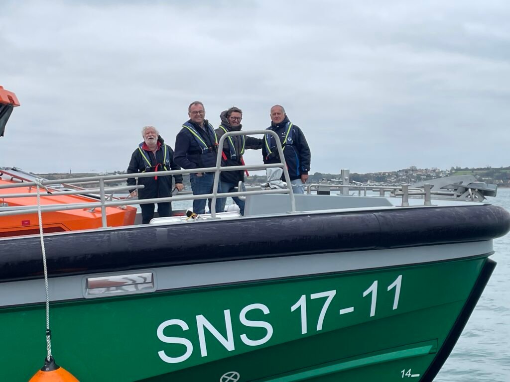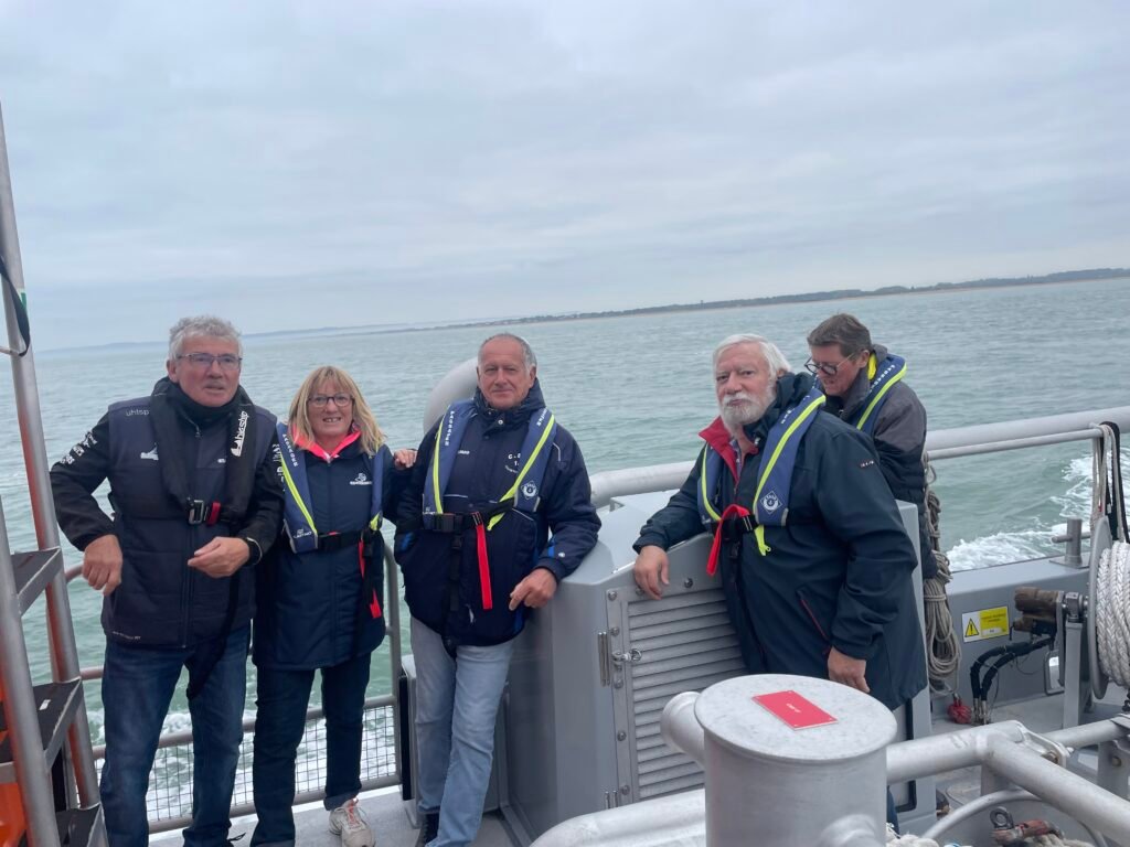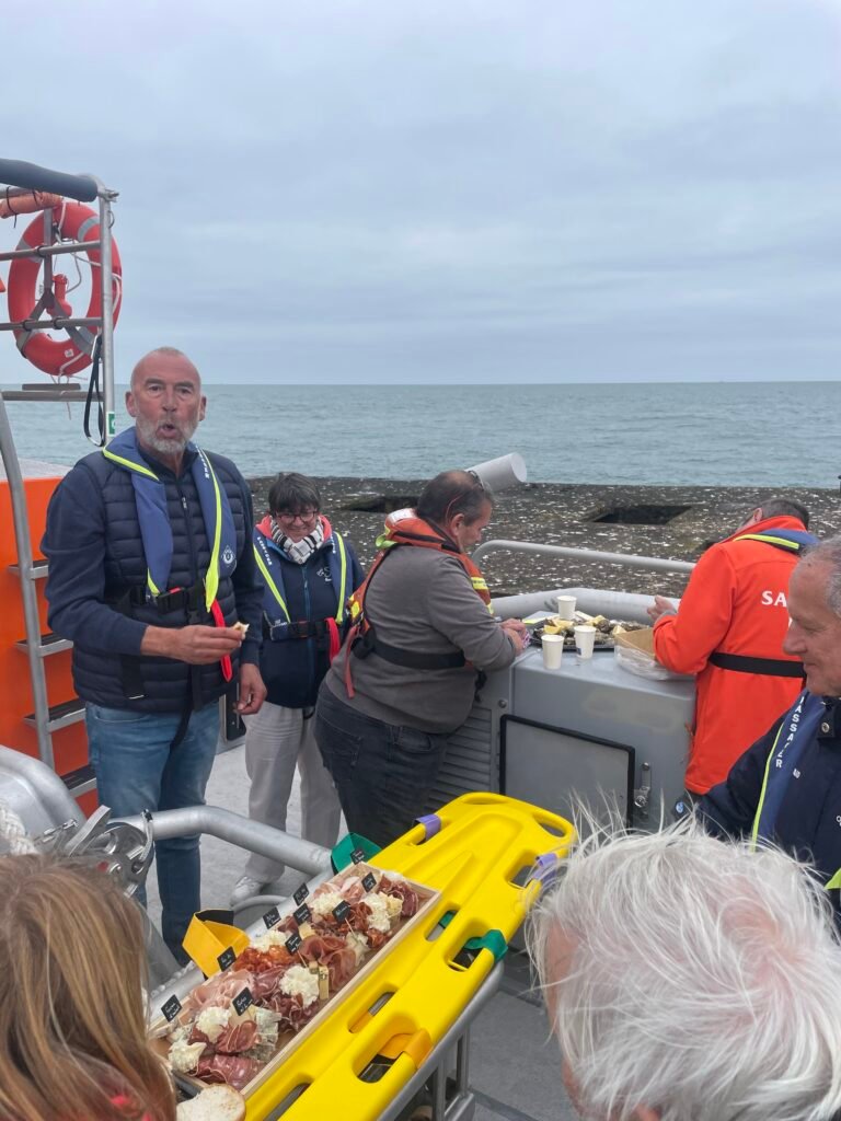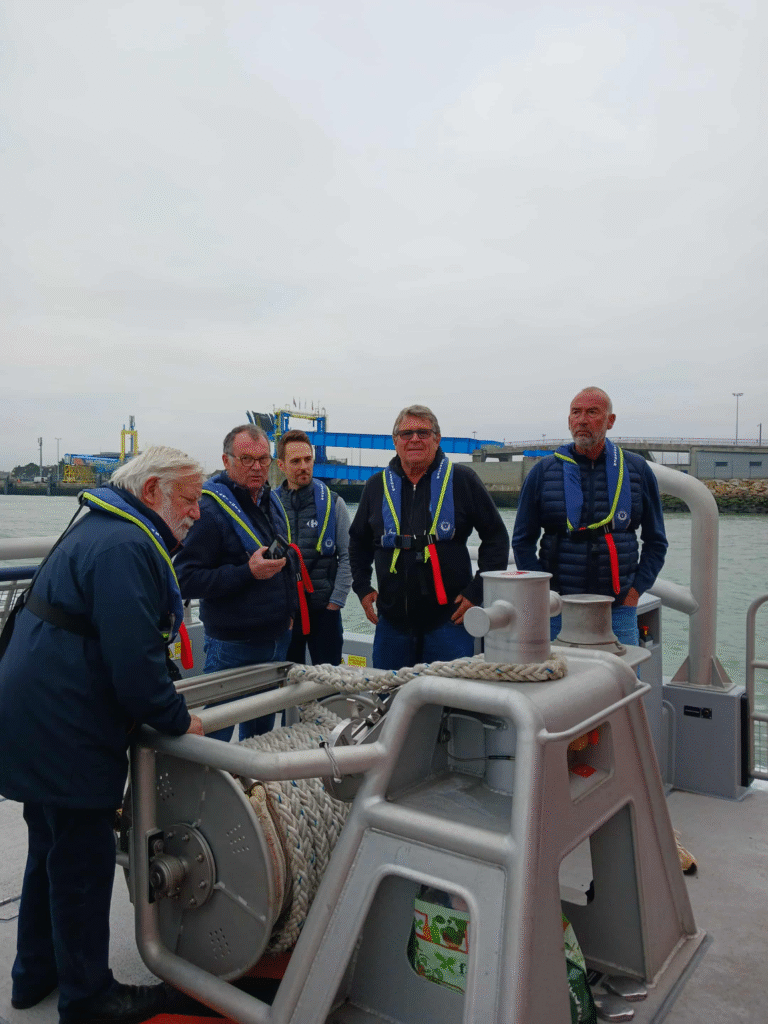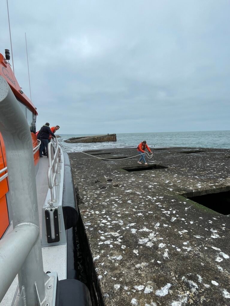 Nous avons eu l’opportunité d’organiser une sortie en mer jusqu’aux pontons d’ARROMANCHES avec nos amis de la SNSM et son commandant Philippe Capdeville