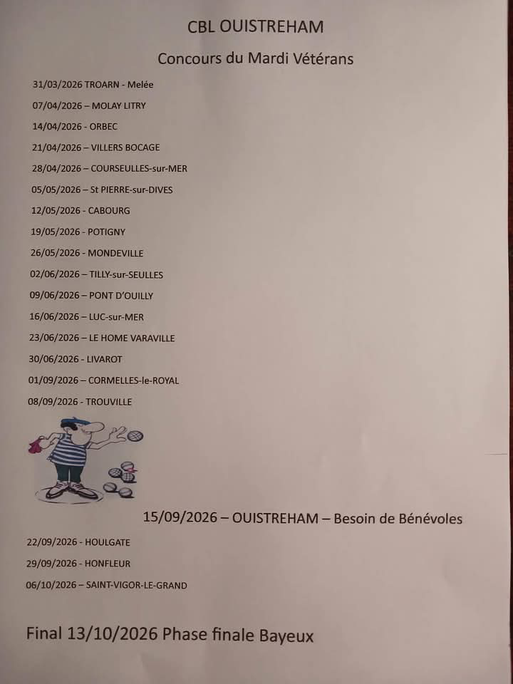 Le comité départemental via la commission VÉTÉRANS propose tout au long de l’année , certains mardis des concours en 5 parties gagnant gagnant